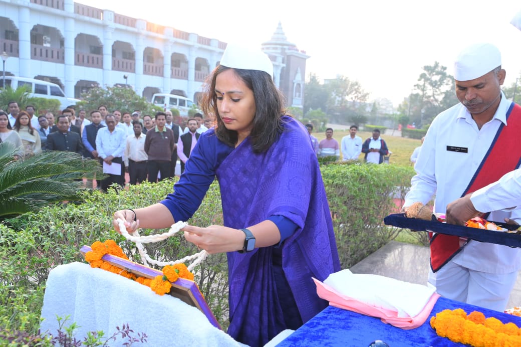 बेमेतरा, 26 जनवरी 2026/-* 77वें गणतंत्र दिवस के पावन अवसर पर कलेक्टर सुश्री प्रतिष्ठा ममगाईं ने कलेक्ट्रेट परिसर में राष्ट्रीय ध्वज फहराया। ध्वजारोहण से पूर्व उन्होंने महात्मा गांधी जी एवं छत्तीसगढ़ महतारी की विधिवत पूजा-अर्चना कर श्रद्धासुमन अर्पित किए।