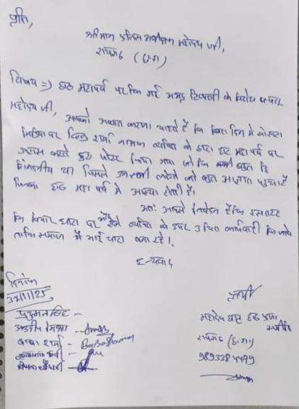 हमें उम्मीद है कि आगे हमें समाज की बैठक भी ना करनी पड़े , ऐसी कोई कार्यवाही आप अवश्य करेंगे ।