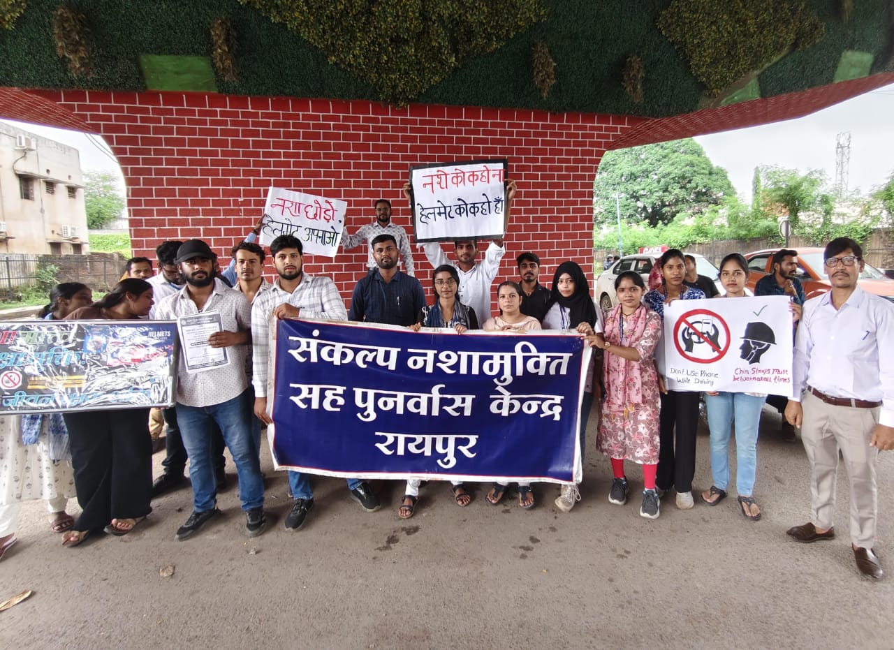 संकल्प सांस्कृतिक समिति की डायरेक्टर मनीषा शर्मा के निर्देशन में संकल्प नशा मुक्ति केंद्र ,और आउटरीच ड्रॉप इन सेंटर के द्वारा शंकर नगर चौक में नशा करके गाड़ी ना चलने, और गाड़ी चलाते समय हेलमेट का उपयोग करने के लिए आम जनता को जागरूक किया गया। लोगों को समझाया गया कि नशा करके गाड़ी चलाने से भारत में सबसे ज्यादा सड़क दुर्घटना होती है, और हेलमेट ना लगाने से सड़क दुर्घटना में सबसे ज्यादा युवाओं की दर्दनाक मौत हो जाती है। इस अवेयरनेस कार्यक्रम में पंडित रविशंकर यूनिवर्सिटी और 36 गढ़ कालेज के एम एस डब्लू के छात्रों का सराहनीय योगदान रहा।