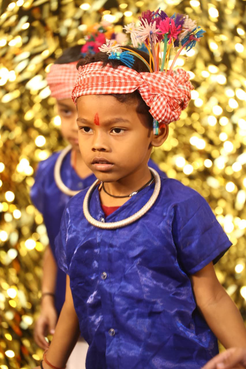 छत्तीसगढ़ी रिमिक्स सांग ने किया मुग्ध – – यादगार वार्षिकोत्सव कार्यक्रम की पहली प्रस्तुति के अंतर्गत हमारे छत्तीसगढ़ की संस्कृति व कला को तरजीह देते हुए स्कूल के यूकेजी क्लास के मासूम बच्चे दिक्षा गभेल सार्थक यादव, इशांक जाधव, वोनटिका साव, वेदर्थ लकड़ा व तनिष्का बंजारे ने छत्तीसगढ़ की संस्कृति को आत्मसात कर व छत्तीसगढ़ी वेशभूषा में सजधज कर जब छत्तीसगढ़ी रिमिक्स सांग में अपनी मनभावन प्रस्तुति दी तो करतल ध्वनि से परिसर गुंजायमान हो गया।