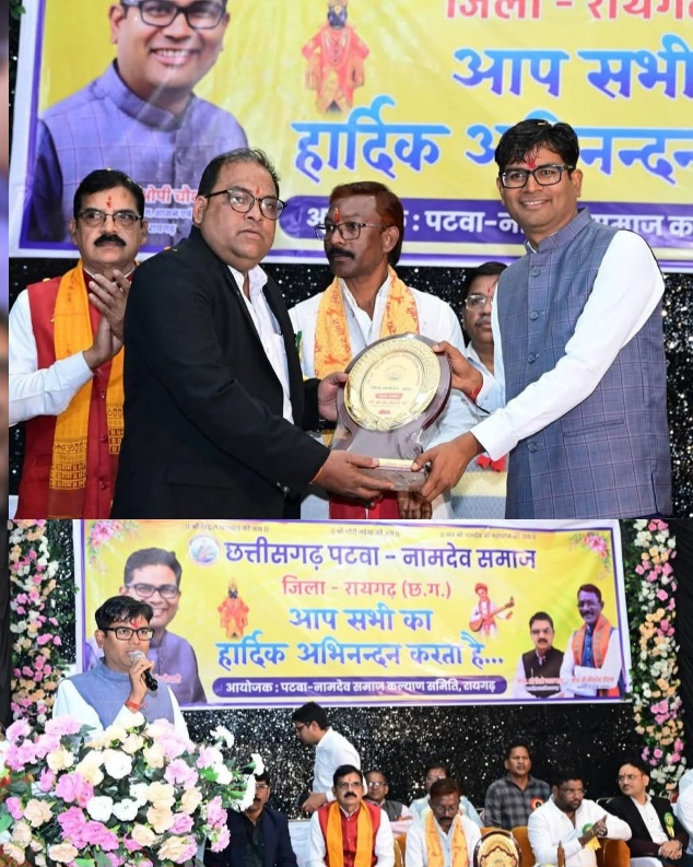 रायगढ़। शहर में संत शिरोमणी नामदेव जयंती के अवसर पर छत्तीसगढ़ पटवा-नामदेव समाज द्वारा भव्य शोभायात्रा एवं विविध सांस्कृतिक कार्यक्रमों का आयोजन किया गया। यह आयोजन नव वर्ष मिलन समारोह 2026 के साथ 4 जनवरी को बालमंदिर परिसर में श्रद्धा, उत्साह और सामाजिक एकता के वातावरण में संपन्न हुआ।