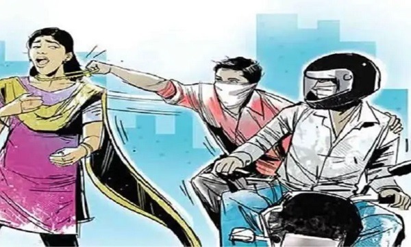 जानकारी के अनुसार, रायगढ़ जिले के पुसौर गांव निवासी नंदनी गुप्ता अपने देवर, देवरानी, जेठ, जेठानी और बच्चों के साथ चंद्रहासिनी मंदिर दर्शन के लिए आई थीं। इसी दौरान मंदिर के पास गली में दो बाइक सवार बदमाश आए और महिला के गले से 14.350 ग्राम वजनी सोने का मंगलसूत्र झपटकर फरार हो गए।