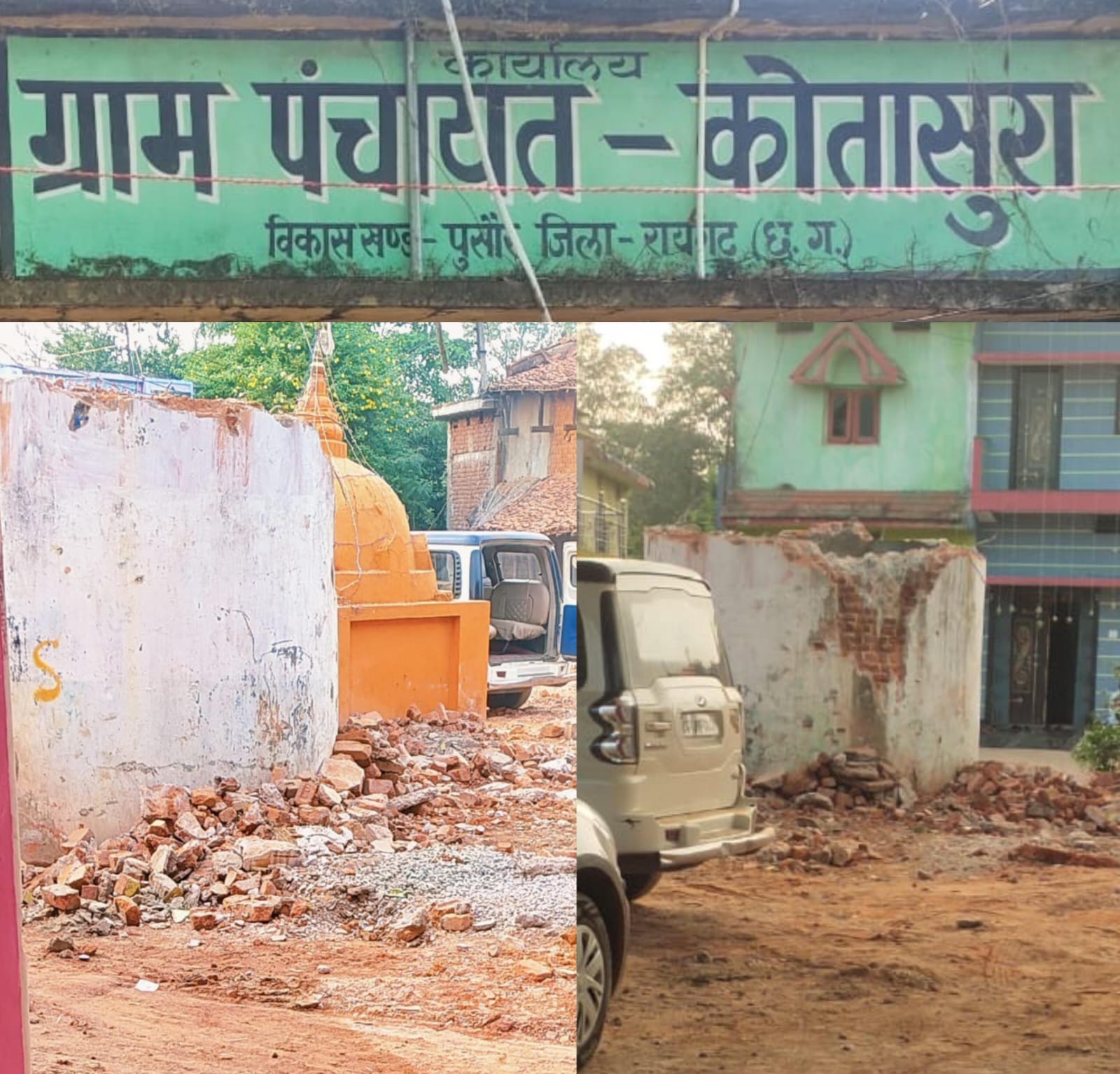रायगढ़// पुसौर ब्लॉक के कोतासुरा गांव में देर रात हुई एक चौंकाने वाली घटना ने ग्रामीणों में आक्रोश फैला दिया है। ग्रामीणों के अनुसार, सरपंच पति दिलीप माली और जनपद सदस्य विनोद पटेल ने रात के अंधेरे में जेसीबी से गांव की पानी टंकी को अवैध तरीके से तोड़ दिया।
