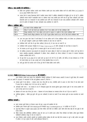 रायगढ़: जिले में मतदाता पुनरीक्षण के तहत 19,341 मतदाताओं को नोटिस भेजा गया है। इन मतदाताओं से अनुरोध किया गया है कि वे निर्धारित दस्तावेज जमा कर पुनरीक्षण प्रक्रिया पूरी करें। यह प्रक्रिया 4 नवंबर से शुरू हुई थी और 21 फरवरी को अंतिम मतदाता सूची का प्रकाशन किया जाएगा। जिन मतदाताओं ने इस दौरान दस्तावेज नहीं जमा किए, उनके नाम सूची से हटाए जाएंगे।