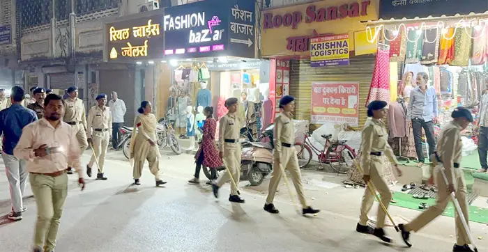 पैदल मार्च के दौरान एडिशनल एसपी श्री सोनी ने सराफा व्यापारियों से दुकानों की सुरक्षा व्यवस्था पर विस्तार से चर्चा की। उन्होंने पुलिस कंट्रोल रूम, आपातकालीन हेल्पलाइन नंबर तथा डायल 112 की जानकारी सभी कर्मचारियों तक पहुंचाने के निर्देश दिए।