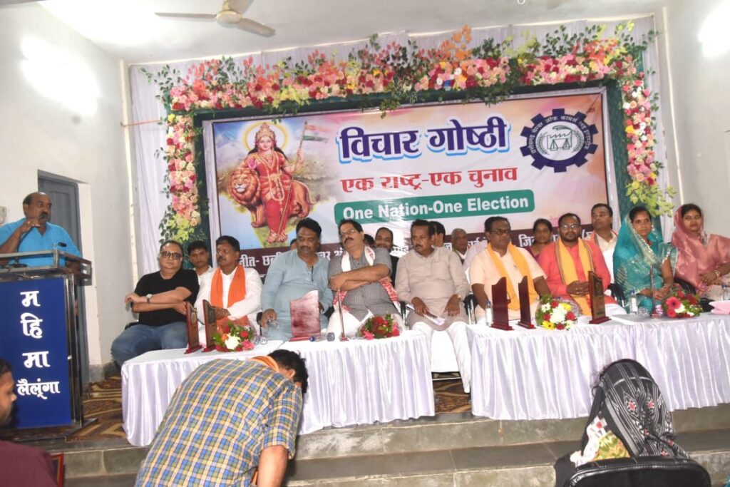 छत्तीसगढ़ चैंबर्स ऑफ कॉमर्स एंड इंडस्ट्रीज, लैलूंगा इकाई के तत्वावधान में एवं भाजपा के तीनों मंडलों के सहयोग से “एक राष्ट्र, एक चुनाव” विषय पर एक भव्य विचार गोष्ठी का आयोजन किया गया। कार्यक्रम का मुख्य उद्देश्य आमजन को इस विषय की गंभीरता से अवगत कराना और जनमत तैयार करना था ताकि देश के लोकतांत्रिक ढांचे को अधिक प्रभावी, पारदर्शी और आर्थिक रूप से सक्षम बनाया जा सके।