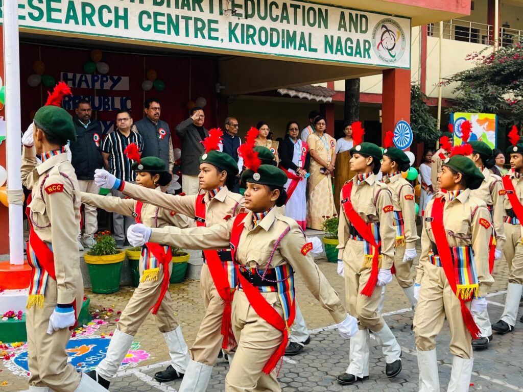 किरोड़ीमलनगर। जिन्दल आदर्श ग्राम्य भारती विद्यालय, किरोड़ीमलनगर में 77वें गणतंत्र दिवस का आयोजन अत्यंत हर्षोल्लास एवं देशभक्ति के वातावरण में किया गया। कार्यक्रम का शुभारंभ भारत माता की पूजा एवं तिरंगा ध्वजारोहण के साथ हुआ। इस अवसर पर विद्यालय के एनसीसी छात्रों द्वारा अनुशासित मार्च-पास्ट प्रस्तुत किया गया, वहीं संगीत विभाग के विद्यार्थियों ने भावपूर्ण देशभक्ति गीतों से समूचे परिसर को राष्ट्रप्रेम से ओत-प्रोत कर दिया।