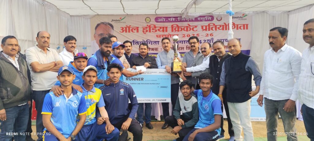 घरघोड़ा – आरसीए रायपुर ने जिमखाना राउरकेला की टीम को एकतरफा मुकाबले में 184 रन से पराजित कर 42वीं ’ओ.पी.जिंदल सम्ृति आॅल इंडिया क्रिकेट प्रतियोगिता घरघोड़ा 2025-26 को जीत लिया है। आज घरघोड़ा के ऐतिहासिक खेल प्रंगण में ढोल नगाढ़ों, बाते गाजे, फटाकों से लेस भारी दर्शकों की उपस्थिति में खेले गये फायनल की द्वंद में आरसीए रायपुर के तेजतर्रार गेंदबाजों ने अपनी लहराती गेंदों से जिमखाना राउरकेला की टीम को झुकने पर मजबुर कर दिया। खिली धुप और हल्की ठंड के बीच शानदार उछाल भरी पिच पर आरसीए रायपुर ने टाॅस जीतकर पहले बल्लेबाजी करने का निर्णय लिया।
