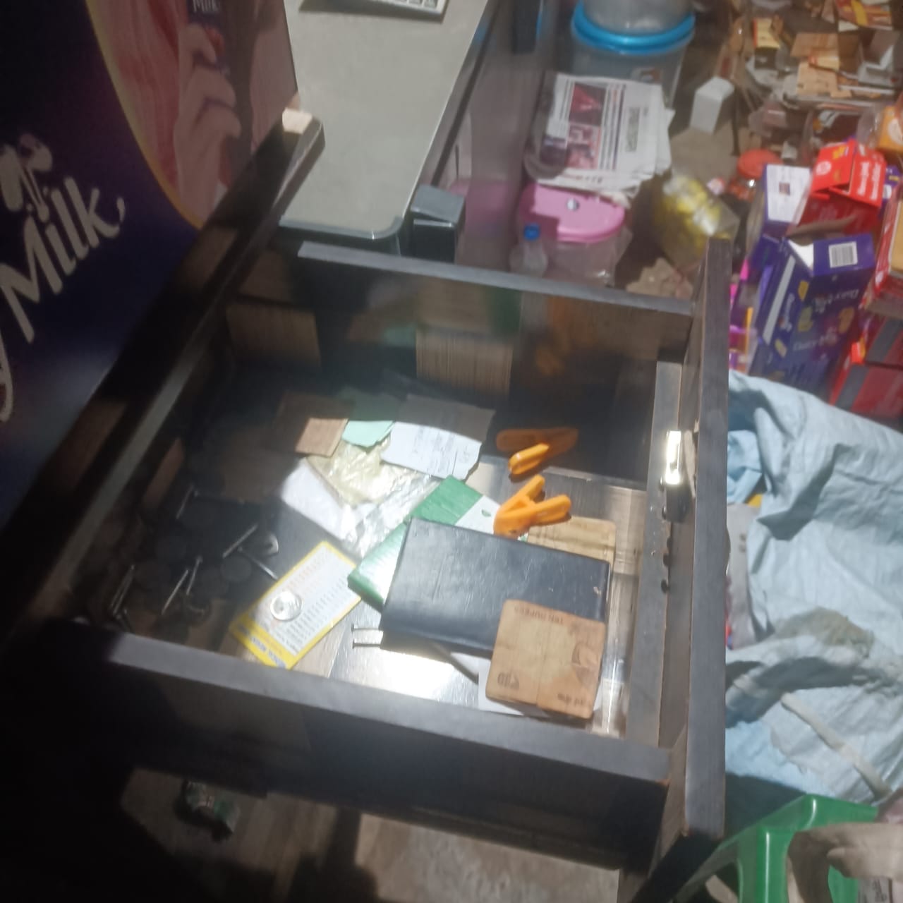 पुसौर नगर पंचायत अंतर्गत बाजार चौक में स्थित फूड जंक्शन में बीती रात अज्ञात चोरों ने चोरी की घटना को अंजाम दिया। रात करीब 2 बजे चोरों ने दुकान का शटर तोड़कर अंदर प्रवेश किया और लगभग 5 हजार रुपये नकद सहित करीब 2 हजार रुपये की ब्रांडेड चॉकलेट चोरी कर फरार हो गए।