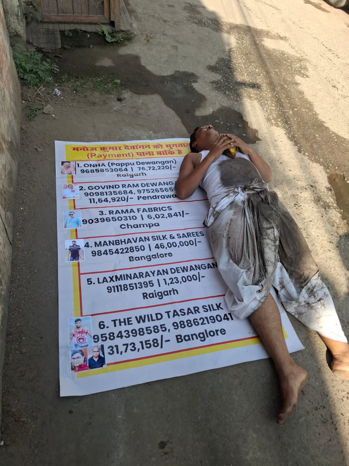 सूत्रों से मिली जानकारी के अनुसार मनोज कुमार देवांगन, पिता सुरेन्द्र प्रसाद देवांगन, निवासी रायगढ़, कोष का एक जाना-माना व्यापारी है। वह साड़ियों का निर्माण कर उन्हें प्रदेश व प्रदेश के बाहर सप्लाई करता था। बाहर के व्यापारियों से भुगतान समय पर मिल गया, लेकिन दुर्भाग्यवश अपने ही समाज के कुछ व्यापारियों ने लगभग दो करोड़ रुपये का माल लेने के बाद भुगतान करने से इनकार कर दिया।